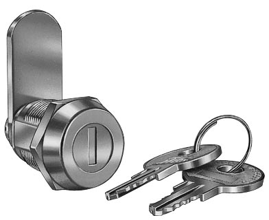 Reversible double-bitted brass keys, nickel plated.